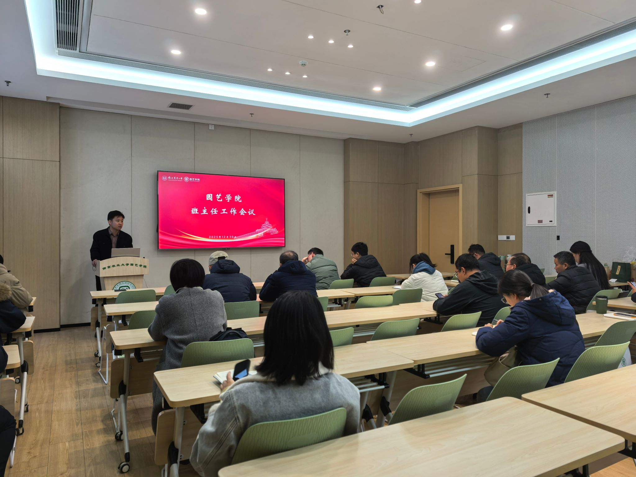 召开学期末班主任工作会议,系统回顾了本学期学生工作成效,部署期末阶段重点工作。院党委副书记束浩渊、全体班主任及辅导员出席会议。
