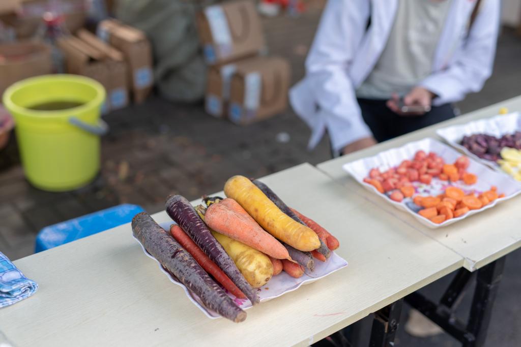 模型、多功能休息椅,现场有学生创业团队制作的特色青梅酒、南农文创产品、花漾花茶等。此外,还有特色的盆栽蔬菜、香港三级片