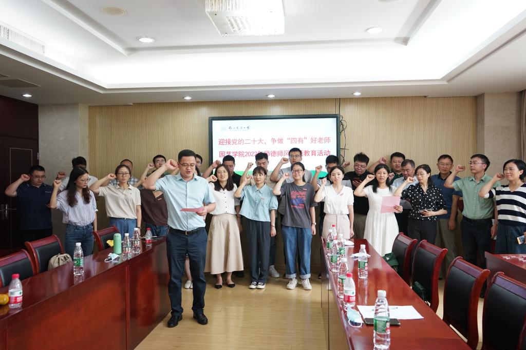 学院领导、老教师代表为新入职教师佩戴校徽。在党委书记韩健的领誓下,新教师进行了入职宣誓仪式,新老教师紧握右拳,庄严宣誓:忠诚党的教育事业,遵守教育法律法规,履行教书育人职责,引导学生健康成长,做到有理想信念、有道德情操、有扎实学识、有仁爱之心,为教育发展国家繁荣和民族振兴努力奋斗!