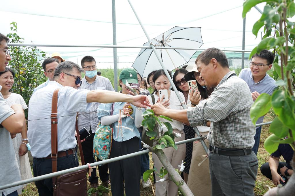 活动开始,全体教师参观了白马教学科研基地的现代设施温室、国家果梅杨梅种质资源圃、梨种质资源中心等学院部分科研平台和基地,不同专业方向的青年老师们现场学习了不同温室的类型、葡萄温室限根栽培技术、梨树高接换种技术等,他们不禁感叹:农业科研不仅要在实验室做出“好文章”,更要扎根大地,练就过硬本领,才能培养出“顶天立地”的现代化农业领军人才。