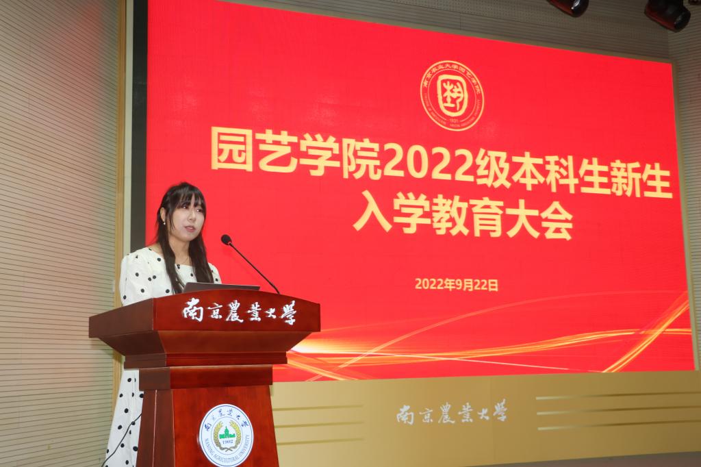 接下来,新生班主任代表王晨以“大学帮你插上理想的翅膀,翱翔青春”为主题,引导同学们思考如何发展自己、成就自己,鼓励新生们明确大学对人生的意义,坚定专业理想,将个人目标与国家发展紧密结合,展现个人价值,肩负起新一代科技农人的历史使命。