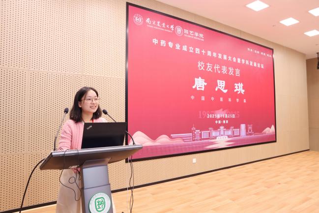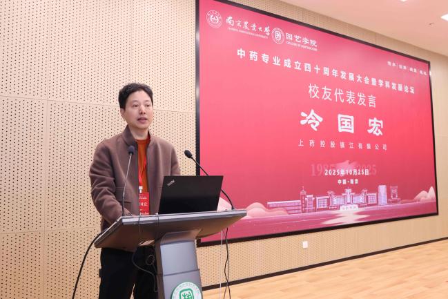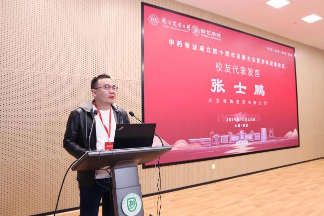 会上,1985级校友、上药控股镇江有限公司总经理冷国宏,1996级校友、江苏省连云港中医药高等职业技术学校副校长胡玉涛,2006级校友、山东福牌制药有限公司销售总监张士鹏,2016级校友、中国中医科学院在读博士生唐思琪作为校友代表分别发言。大会还举行了“薪火相传”仪式,中药学专业创始人之一,国家药典委委员,俄罗斯工程院外籍院士郭巧生教授将象征悬壶济世精神的“宝葫芦”传递给2025级中药专业本科新生朱静轩同学。郭巧生回顾了中药专业四十年的发展历程,指出我校中药学是我国高等农林院校中首个中药专业和首个医学门类中药学一级学科硕士点,为国家中药事业的传承、创新和发展培养了大批人才,产出了丰硕成果。