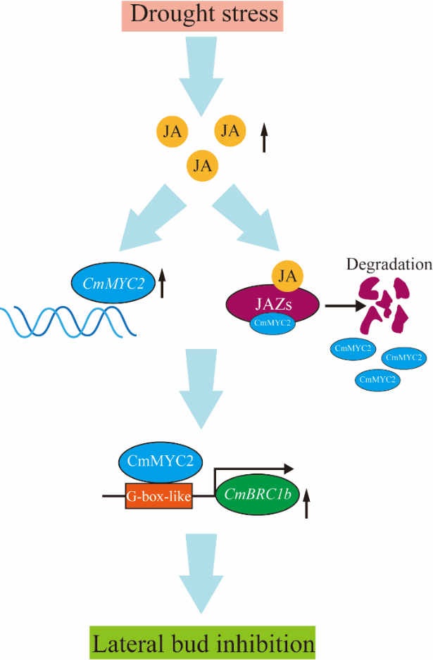 株型|在Plant Physiology发表研究论文揭示茉莉酸信号通过CmMYC2-CmBRC1b模块在干旱胁迫下抑制菊花分枝的分子机制