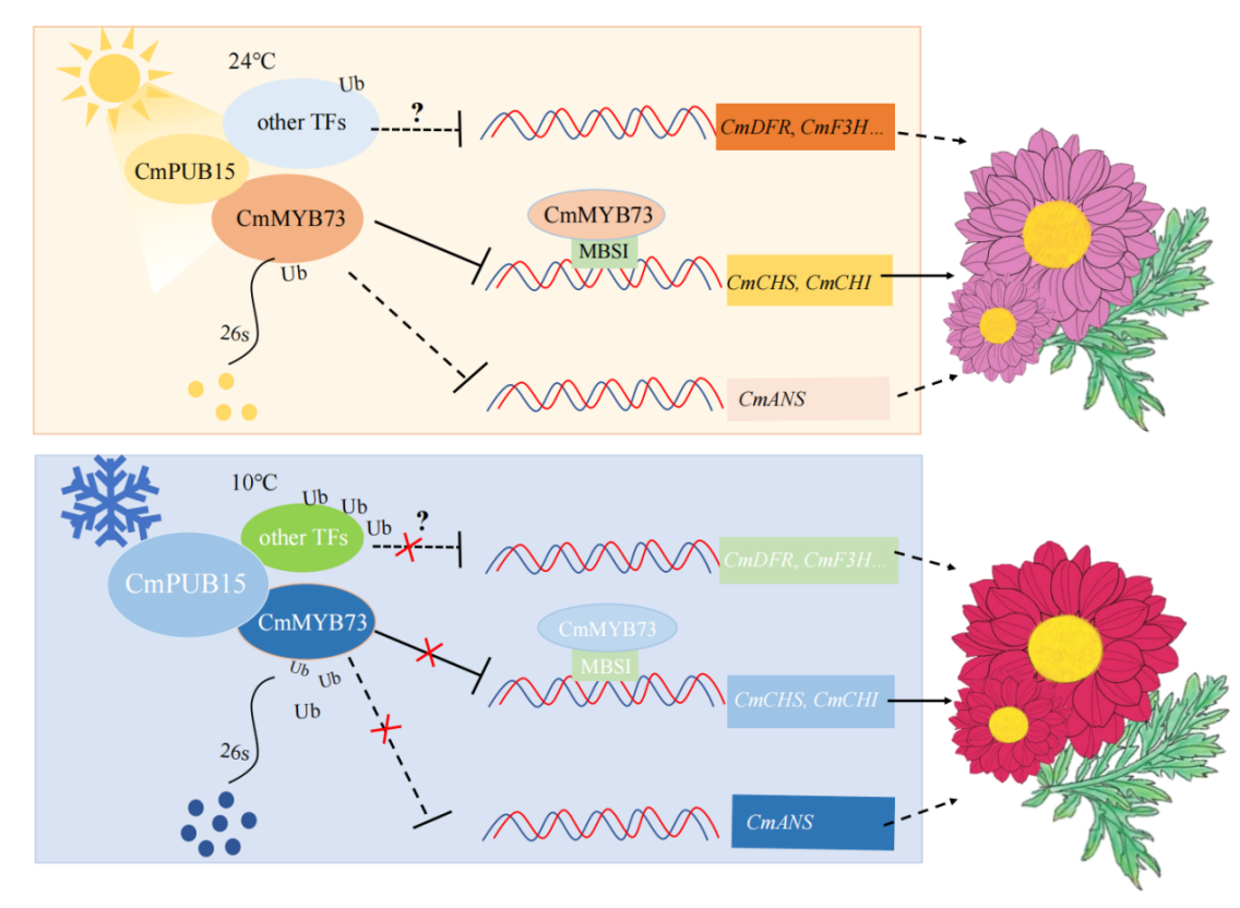 花色|在New Phytologist发表研究论文揭示U-box型E3泛素连接酶CmPUB15响应低温调控花瓣着色的新机制