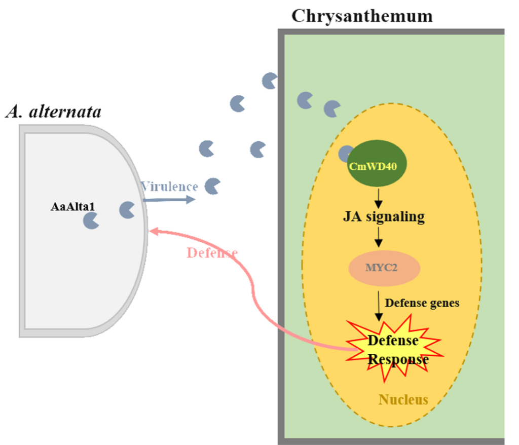 抗病|在PLOS Pathogens发表研究论文揭示黑斑病菌效应蛋白AaAlta1与菊花CmWD40蛋白互作激活茉莉酸信号通路诱发抗病性的新机制