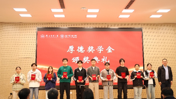 颁奖典礼上,参会嘉宾为获得缤纷助学金、心路助学金、百绿园林奖学金、厚德奖学金、宏旭达园林奖学金、坂田种苗企业奖学金、章镇奖学金的60余位学生逐一颁发荣誉证书。